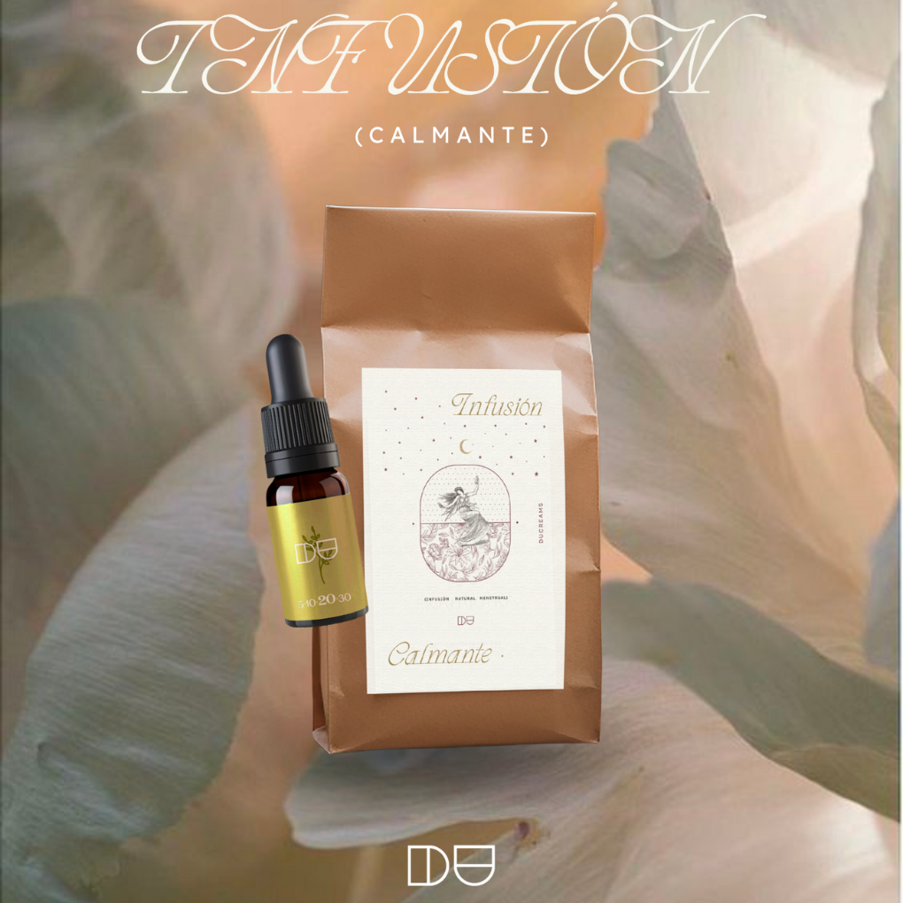 Nuestra infusión menstrual de Ducreams calma cólicos e hinchazón con ingredientes naturales como rooibos, menta, hinojo y jengibre.